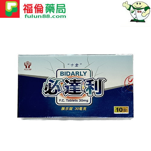 必達利膜衣錠 Bidarly 30mg | 延遲射精 治療早洩 必利勁 10錠/盒 十全實業製造