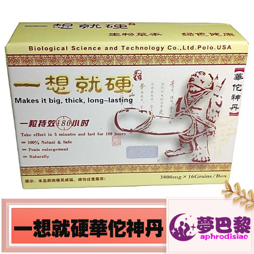 一想就硬再次成為繼偉哥之後最暢銷的男性保健品。本品具有增強快感,性交時間長達70分鐘,重覆性交,激發多次欲望,陰莖能多次強烈勃起,強精後不疲勞,能達到多次高潮,服用華佗神丹後能在40分鐘內強力勃起,陰莖增粗增大增硬。特別這合中老年人使用 ,高血壓,心臟病患者及酒後均可服用!